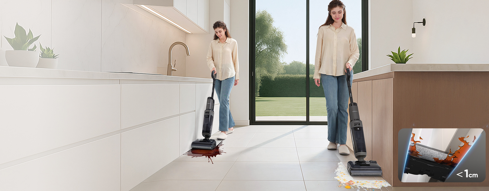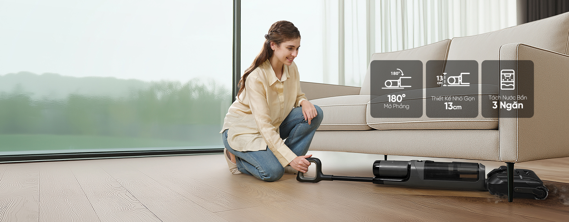 Dễ dàng làm sạch các khu vực thấp dưới đồ nội thất và trong những không gian hẹp mà không gặp bất kỳ trở ngại nào.