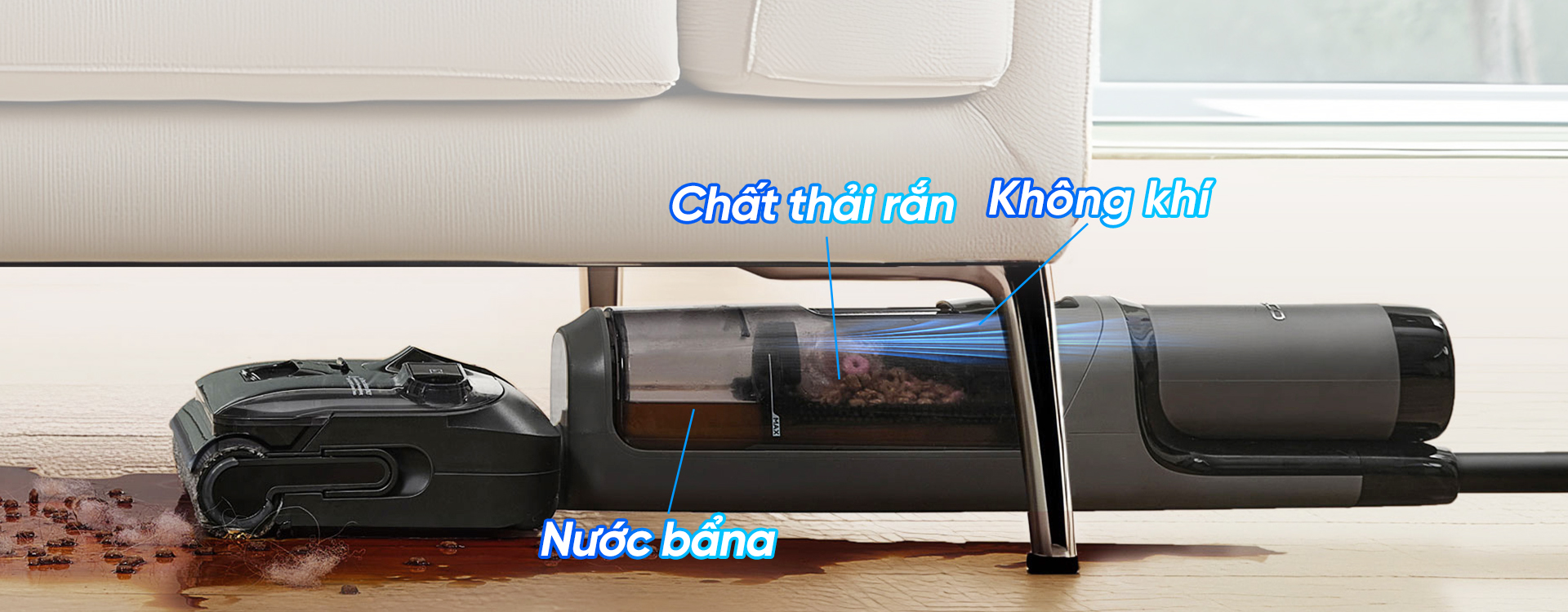 Hiệu quả phân tách chất rắn, chất lỏng và không khí, bảo vệ động cơ và đảm bảo lực hút mạnh ngay cả khi ở vị trí phẳng.