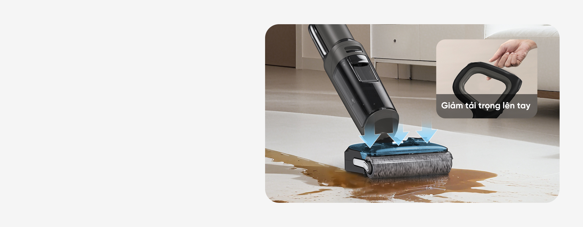Áp lực nước được tăng cường giúp làm sạch hiệu quả hơn, đồng thời giảm trọng lượng thân máy để đảm bảo thao tác nhẹ nhàng và tiết kiệm sức lực.