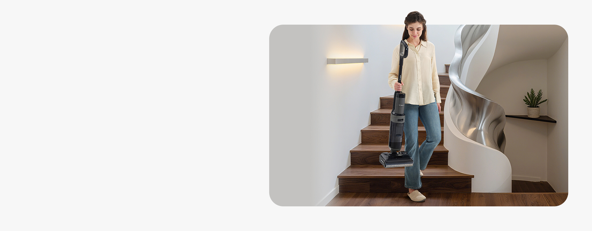 Dễ dàng mang theo khắp nhà, lên xuống cầu thang tiện lợi, đáp ứng mọi nhu cầu làm sạch một cách nhẹ nhàng.