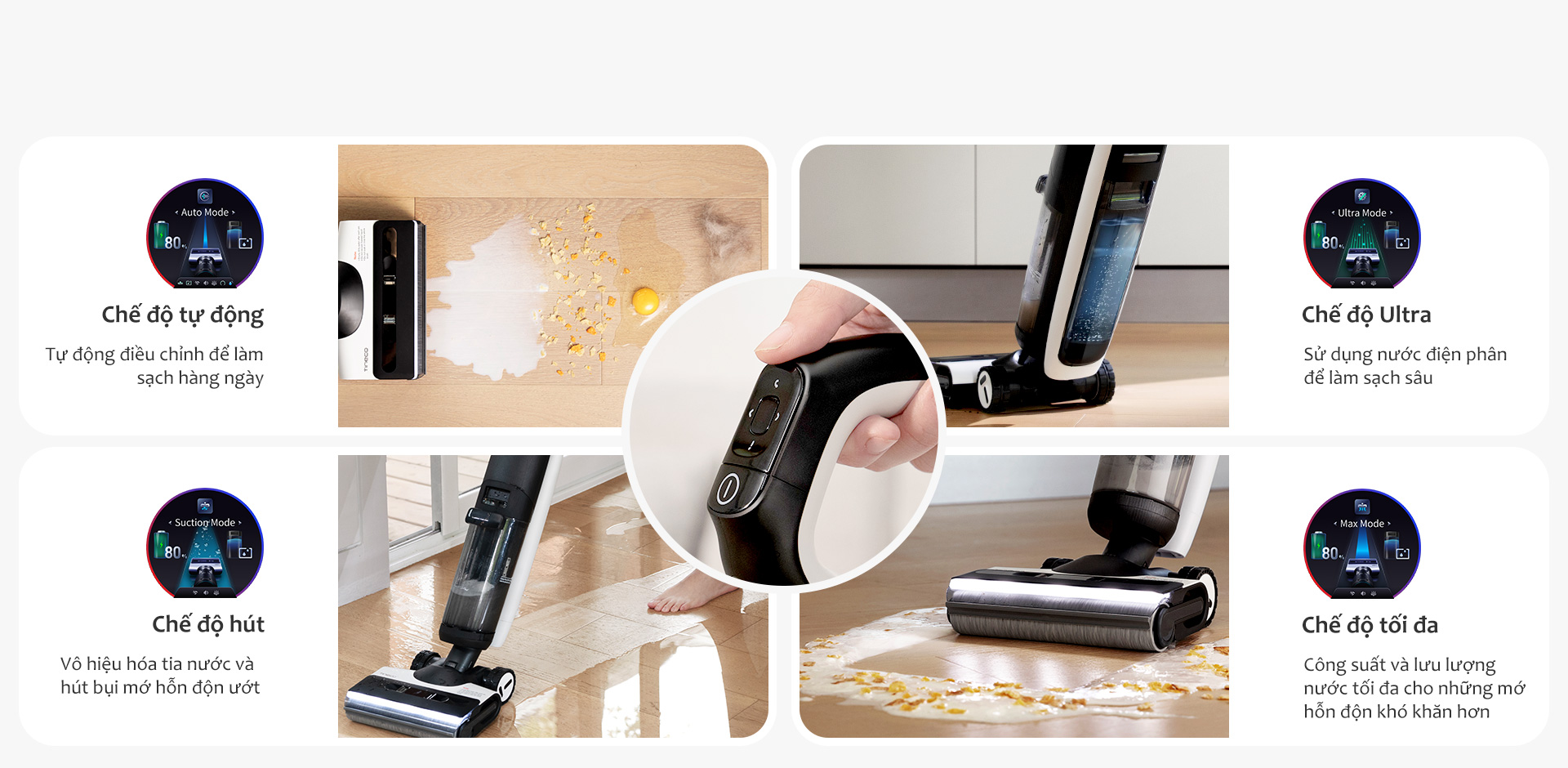 • Chế độ làm sạch đa dạng